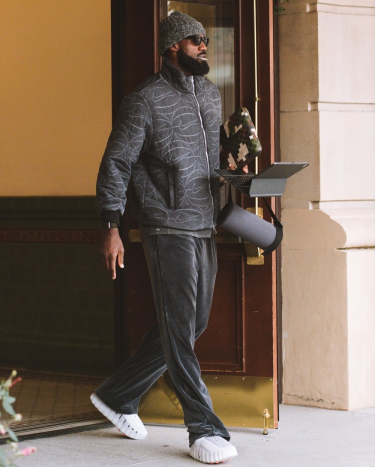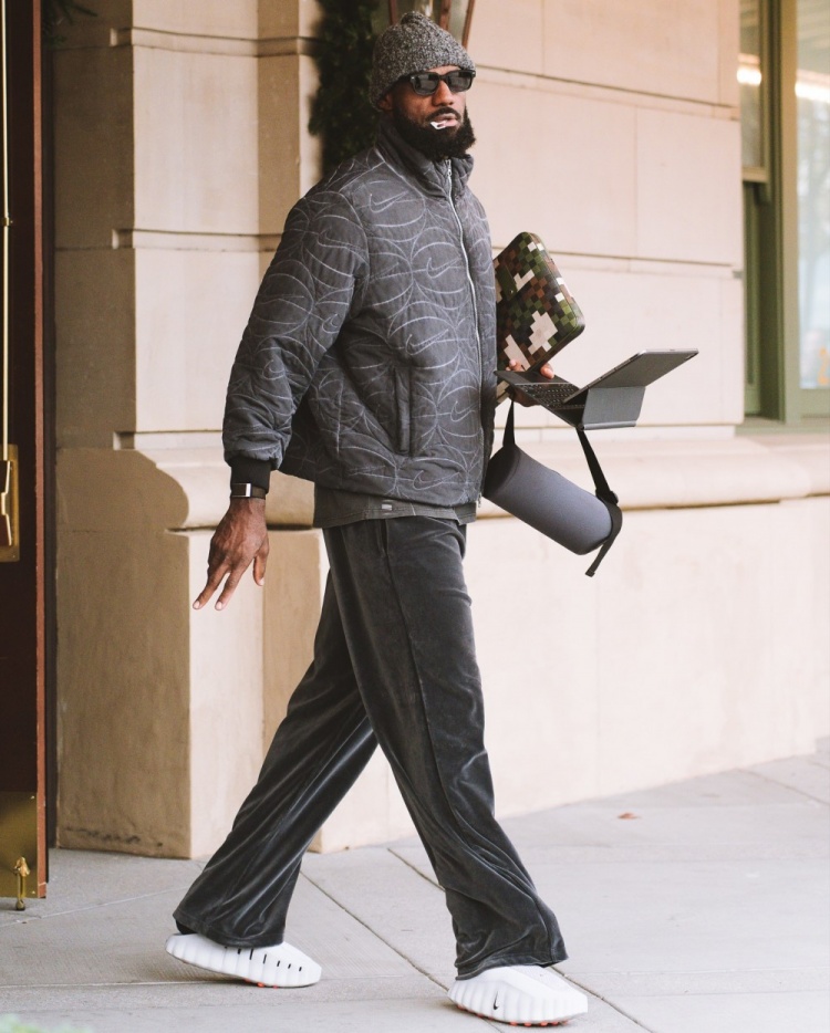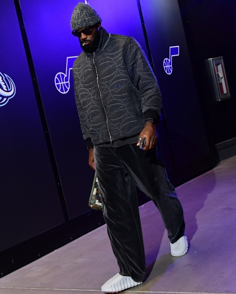 Today the Lakers played away against the Jazz. James wore the brand's latest technological slippers, Nike Mind 001, when he entered the game.