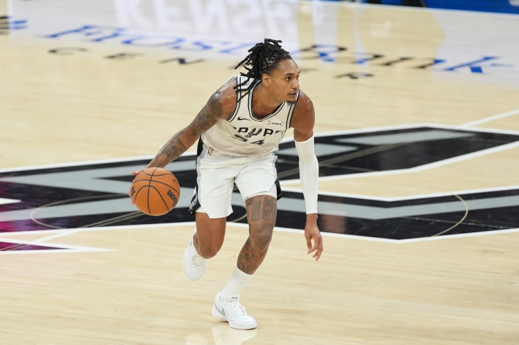 In the first half, Spurs player Vassell played efficiently. He made 4 of 9 shots, 3 of 6 three-pointers, and 1 of 2 free throws in 18 minutes. He scored 12 points, 4 rebounds, and 1 assist, with a plus-minus value of +1.
