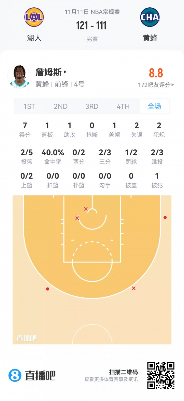 Sean James, the No. 33 pick of the second round of the Hornets Played for 24.6 minutes