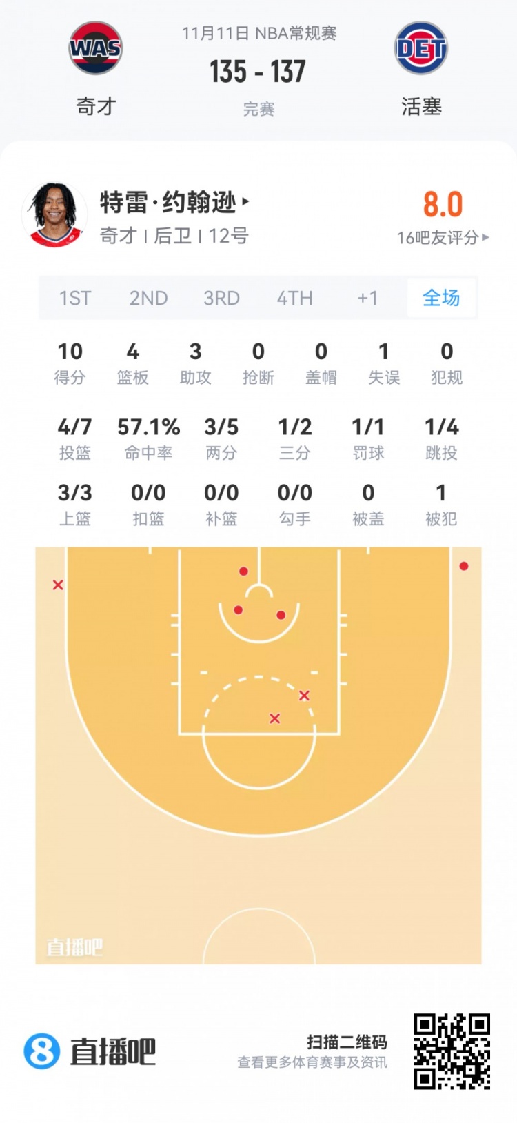 Trey Johnson, the No. 6 pick in the first round of the Wizards Played for 23.3 minutes