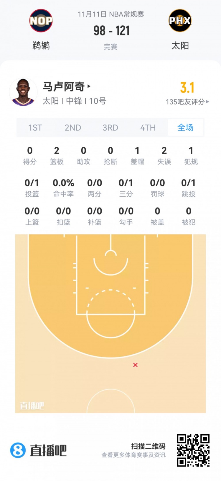 Kaman Maluachi, the 10th pick of the first round of the Suns, played for 4.5 minutes
