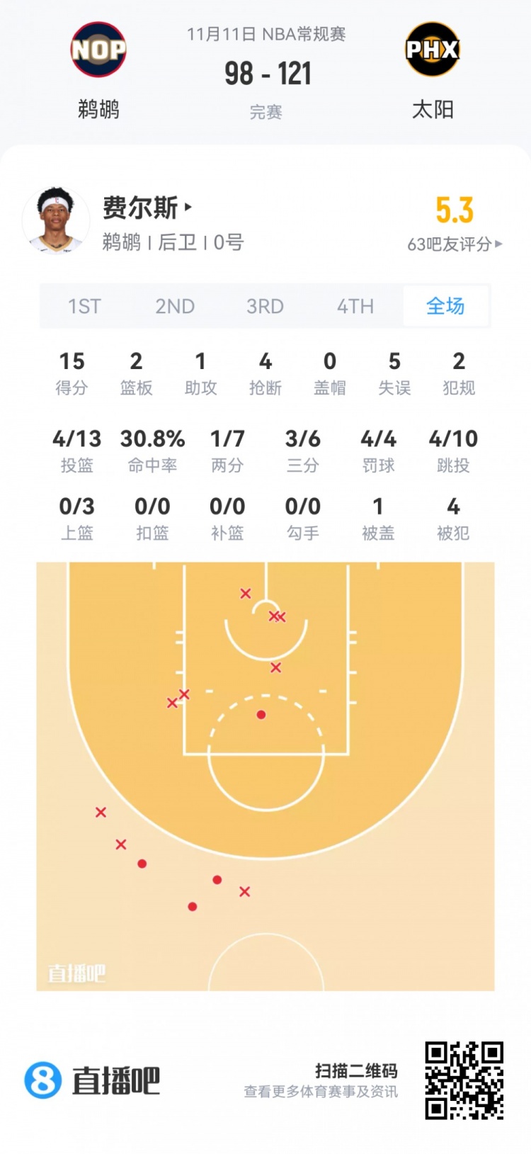 Pelicans No. 7 pick Fells in the first round Played for 30.7 minutes