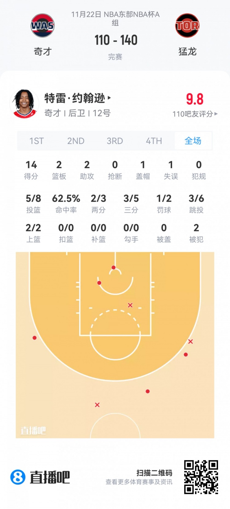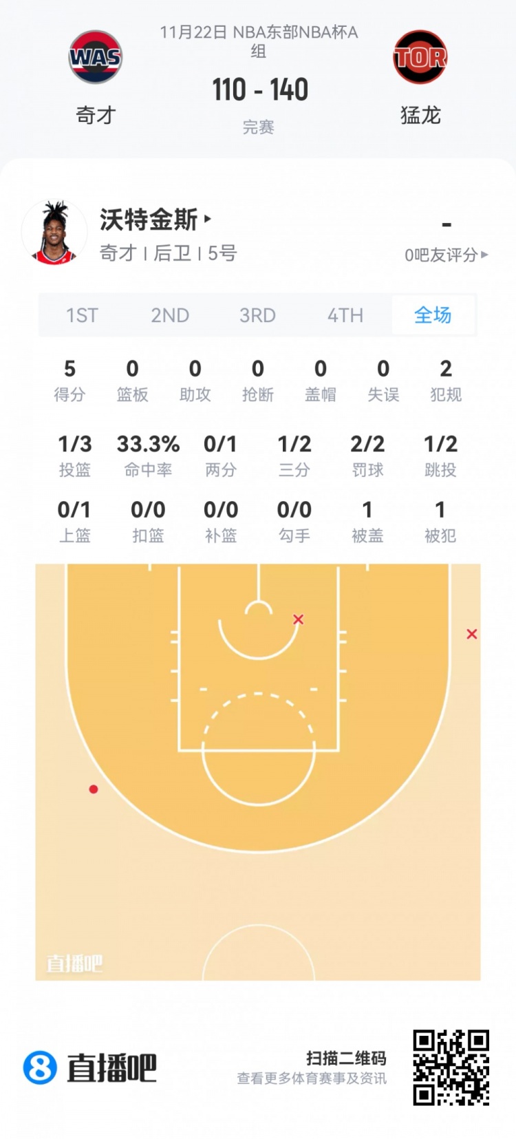 Jameer Watkins, the No. 43 pick in the second round of the Wizards, played for 9.3 minutes