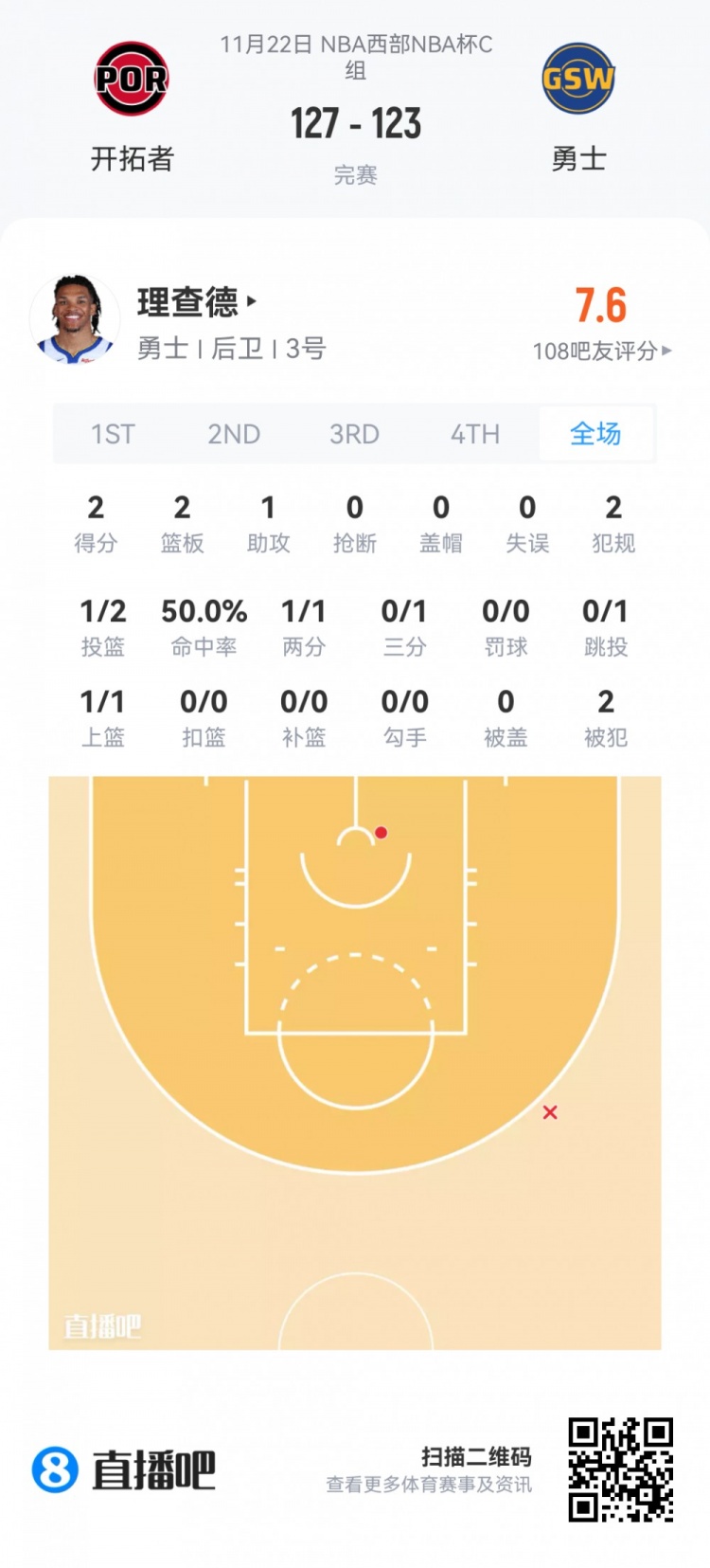 Will Richard, the No. 56 pick in the second round of the Warriors Played for 9.3 minutes