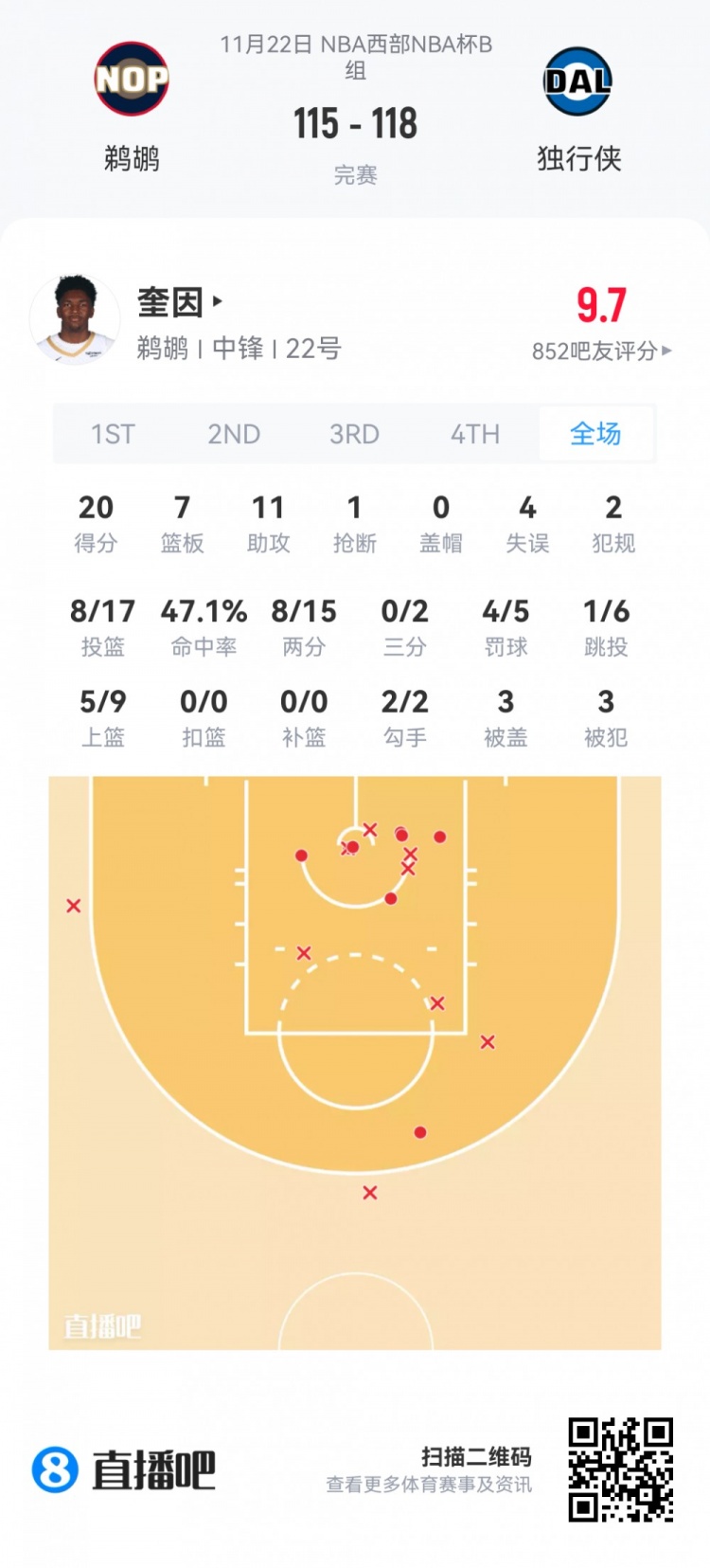 Derrick Quinn, the No. 13 pick in the first round of the Pelicans. Played for 32.2 minutes.