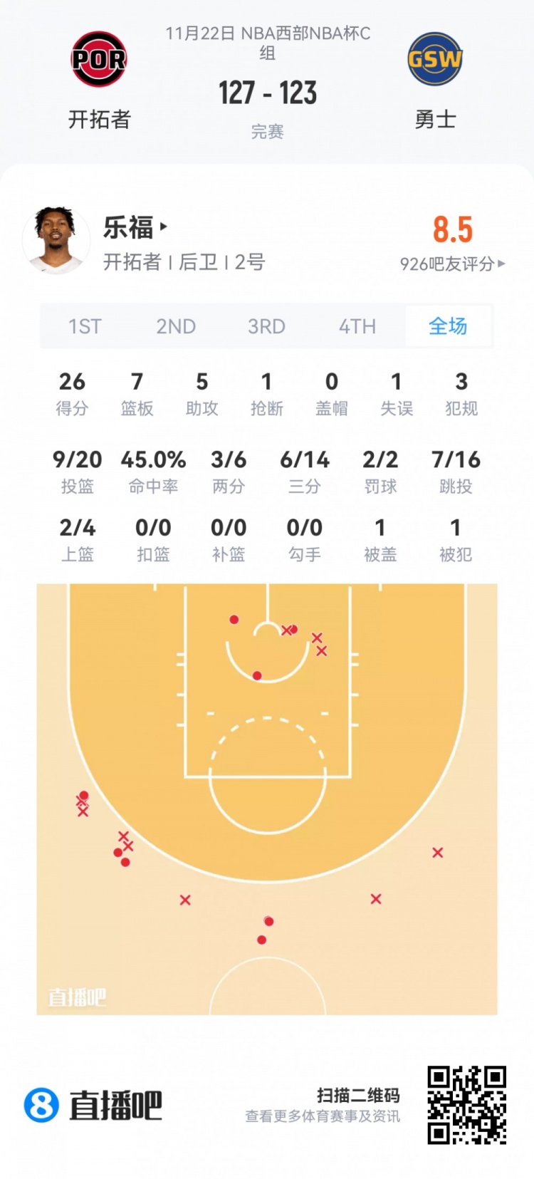 [Rookie] Flagg scored a new high of 29 points, Love scored 26 points and killed the Warriors with 266 three-pointers, and Felsquin was stable.