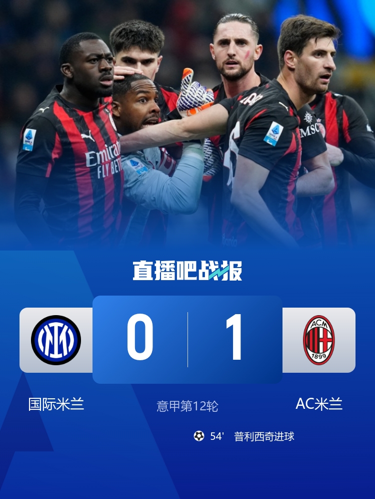 In the 12th round of Serie A, Milan defeated Inter Milan 1-0 to dominate the Milan derby. So far, Milan has achieved 6 derby games unbeaten and ended its opponent's 4-game winning streak in all competitions.