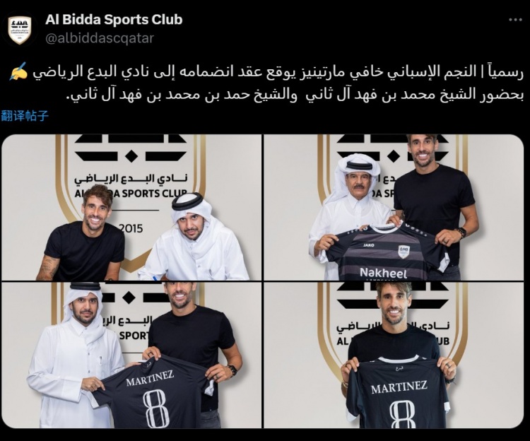 Qatar League Two Club Albida officially announced that it would sign 36-year-old Spanish midfielder Xavi Martinez. Albida did not disclose the contract term.