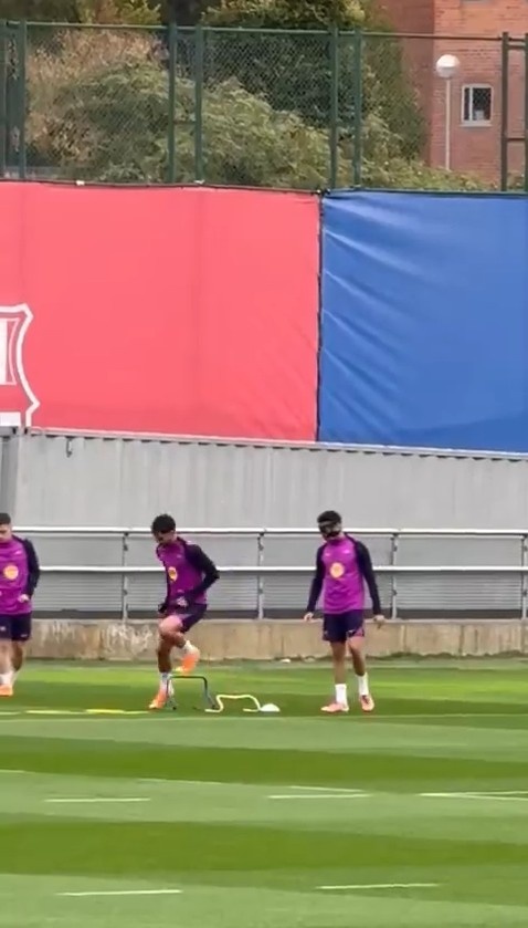 David Ibáñez posted a Barcelona training video on social media and wrote in the text: "Barcelona is training today to prepare for the game against Celta Vigo. Eric Garcia is training with a mask, and Christensen may also travel with the team tomorrow."