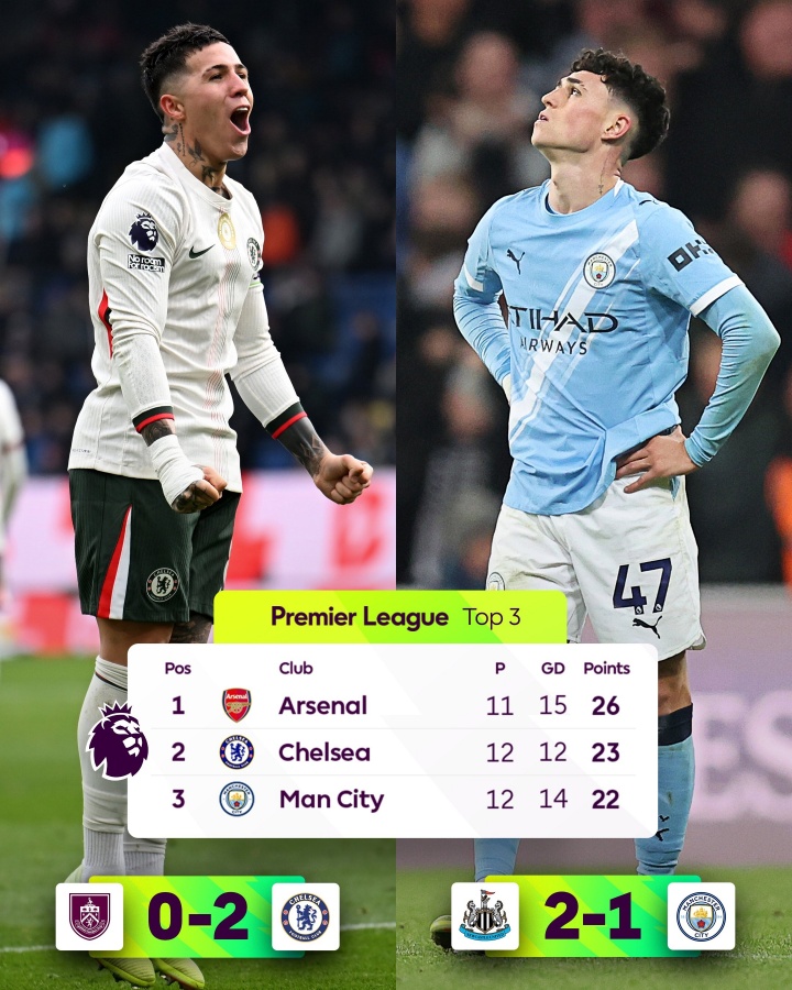 After many games in the 12th round of the Premier League, Chelsea overtook the losing Manchester City and rose to second place in the Premier League after winning.